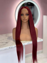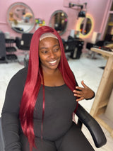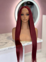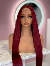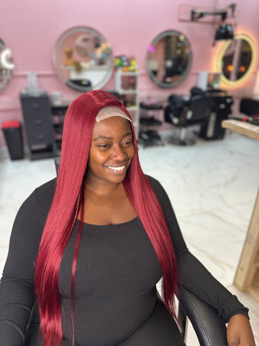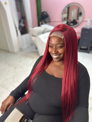 Introducing the Sexy Red Unit - a 4x4 synthetic lace wig with 36 inches of fiery, bold red hair and an astounding 250% density. Inspired by Naomi Campbell's iconic long black Buss Down & Of course Sexxy Red, this vibrant red version is for the fierce and fearless.